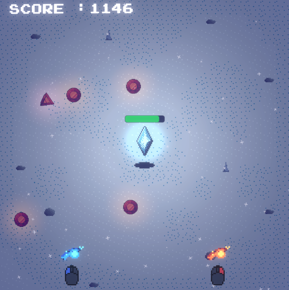 In Shard Keeper, your goal is to defend you crystal from enemies that come forever, discover the different enemies behaviors and try to get the highest score you can !
