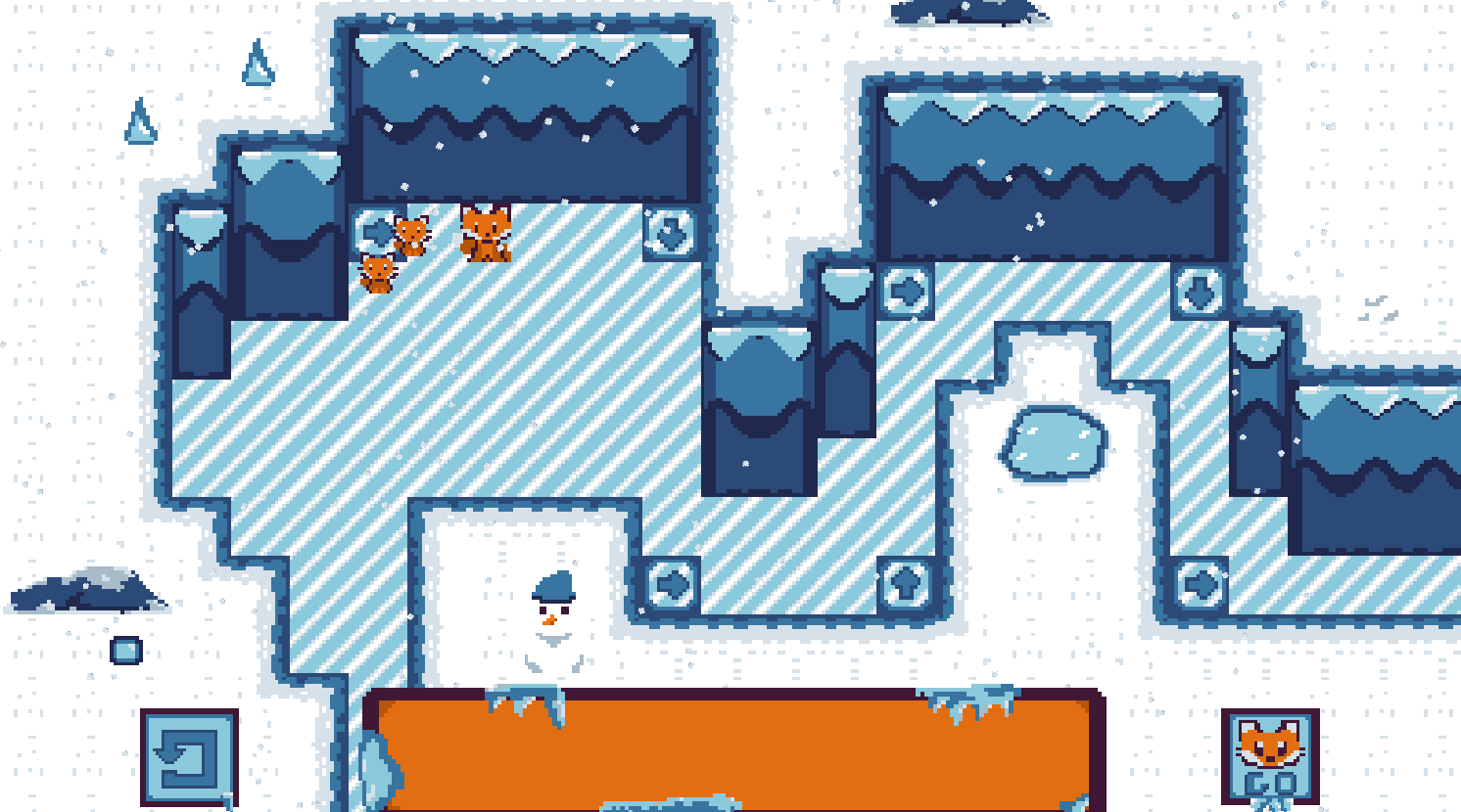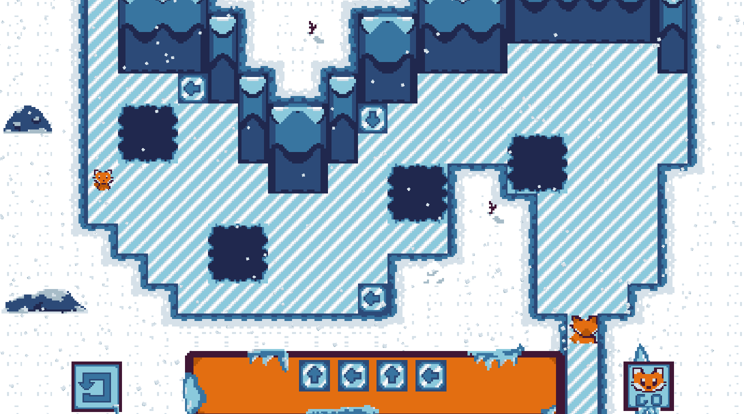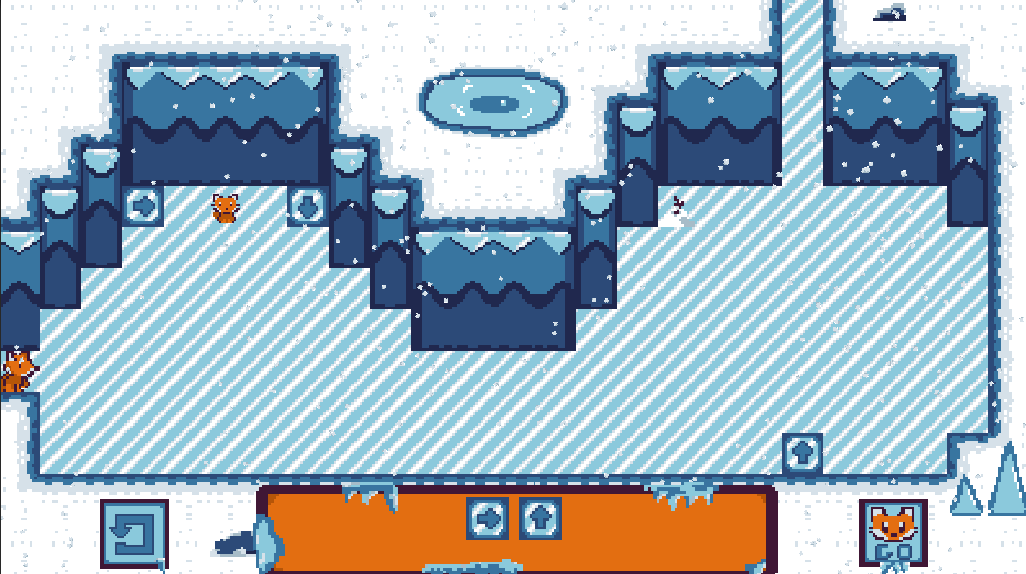 In Slip N' Sly, you embody a fox lost in an ice cave; your goal is to get out of here by finding as many lost foxes as possible.